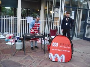 The Friday morning started early with a History Mystery Breakfast on ABC Radio with Stewart Brash and Stuart Traynor giving glimpses into local history. This was broadcast from a mystery outside venue and the audience was given clues about where to find them, the reward being a bacon and egg breakfast! Later that morning Megg Kelham gave an interesting, entertaining, stimulating and at times challenging talk on ‘Mrs Robert Stott’s History of Punishment in Central Australia’ which made everyone think about the past and its relevance to the present. In the evening the Alice Springs Theatre Group gave a great example of the wealth of talent in the town at the Totem Theatre, delving into some of the characters that had shaped the long history of Alice Springs.