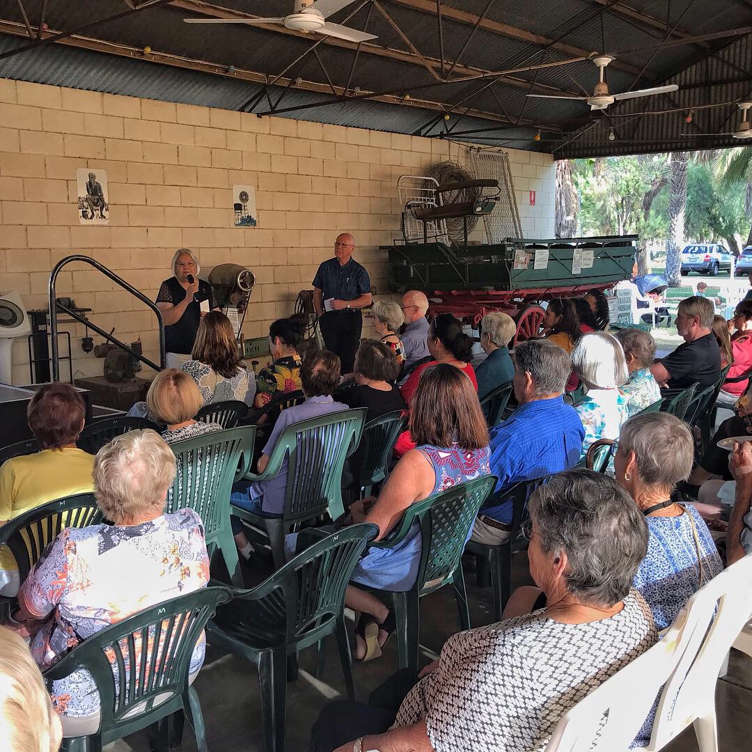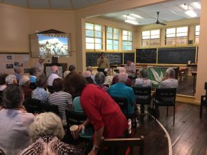Kerrie Espie nee Hocking gave a talk on the Tuesday evening at Hartley Street School Museum with stories of her time as a student from the period the 1940s to 1960s. This was then followed by the launch of the Heritage Trail Brochure by Wayne Kraft to a very well attended crowd of moviegoers at the screening of ‘A Town like Alice’. Ted Egan introduced the movie with his song ‘A Town like Alice’ and everyone enjoyed an authentic outback experience.