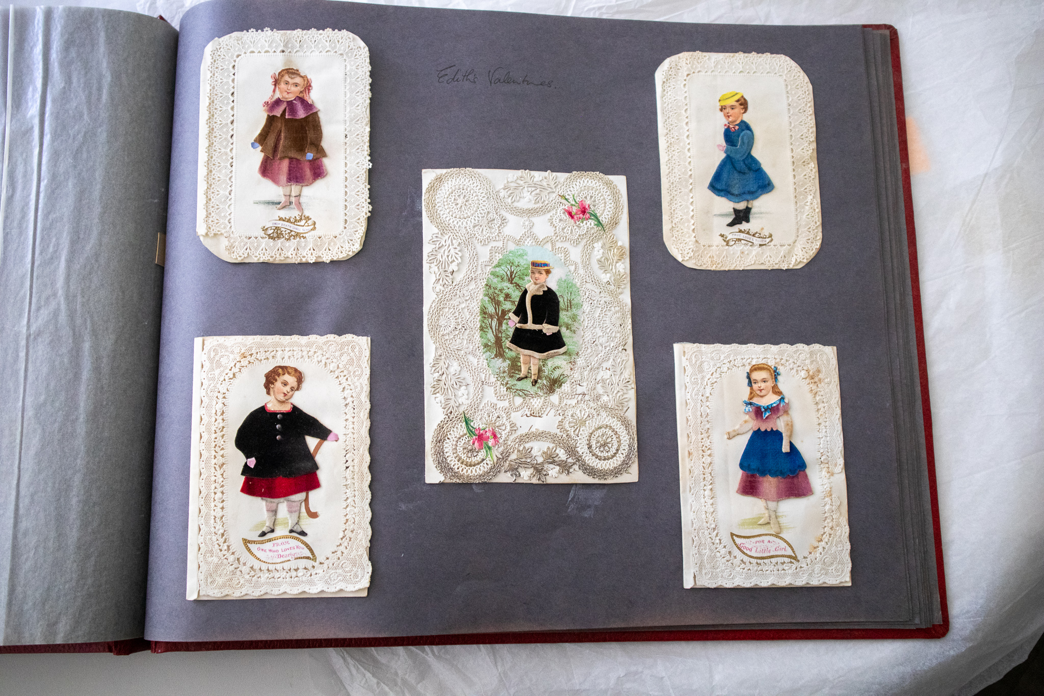 The novelist and artist Joan Lindsay (1896 - 1984) best known for writing Picnic at Hanging Rock, collected Valentine’s Day cards – unique Victorian-era items that are equal parts delicate, beautiful, and strange. She compiled her collection in a red leather album which was gifted, together with the contents of Mulberry Hill, to the National Trust by Sir Daryl and Lady Lindsay.