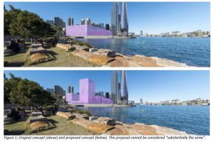 However, the proposed modification includes immense design changes, a floor area increase of over 96,000sqm, large environmental impact, and is nowhere near the same design as the original concept. The Trust believes this project to be unjustifiable as a modification, and thoroughly objects to this application as a valid modification request.