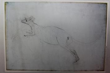 Below are copies of two sketches by Sydney Parkinson of the gunguuru which are on display in our Endeavour Gallery.
