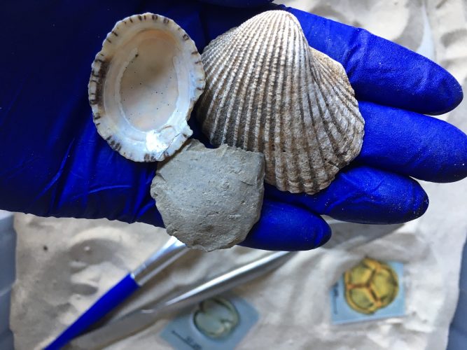 | | Recording and Processing | Construct and use a range of representations including graphs, keys and models to record and summarise data from students’ own investigations and secondary sources, and to represent and analyse patterns and relationships (VCSIS110) | Record data of objects found, including location, measurements, description, materials and use, to find patterns and relationships in the stratigraphy. |