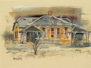 Derelict School, Willunga, S.A. (now demolished) by Kenneth Jack (1924-2006). Watercolour 1970 (on loan from a Private Collection)
