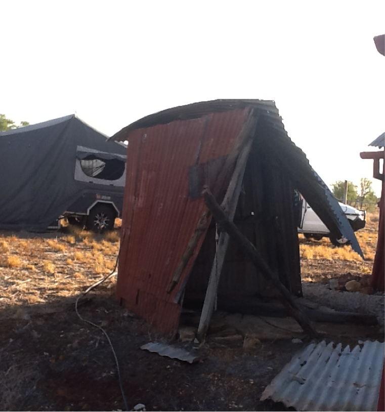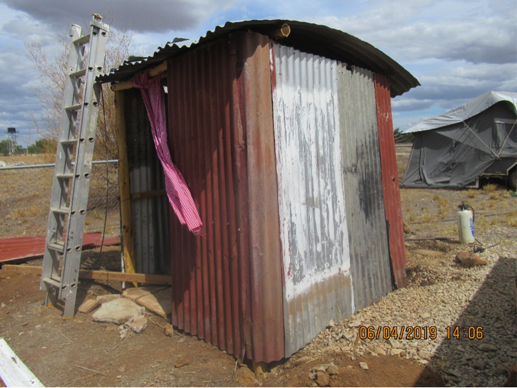 The Ablution block at Jones Store was in poor condition with rails and post partially eaten out and or rotted at ground level. The strong winds generated by Cyclone Trevor basically demolished the shower room leaving only the back wall standing or folded in on itself.