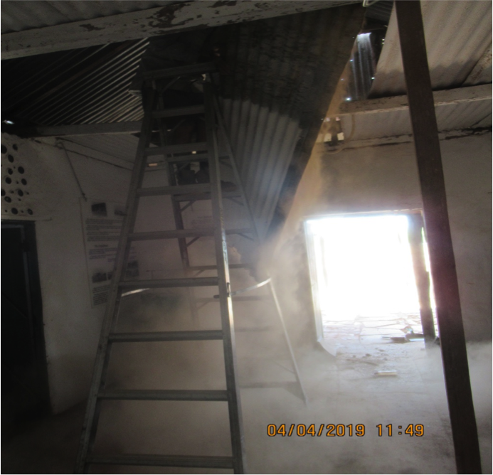 To repair or replace the broken A-frame rafters and braces it was necessary to remove the galvanised iron ceiling. Not a particularly easy or pleasant task. The iron was rusted through in a number of places and the top side had an accumulation of at least 30 years of grime, dust, and filth which cascaded down every time a sheet was moved. The majority of the iron is badly corroded and beyond use.