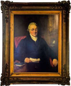 The large painting of La Trobe’s father, Christian Ignatius La Trobe (1758-1836) is by Thomas Barber (1768-1843). Christian Ignatius La Trobe followed his father into the Moravian church. He was also a musician and composer, a friend of Haydn, and was significantly influential in disseminating the European classical style of church music in Britain. He became secretary of the international Moravian church in Britain and was a promoter of its missionary activity. He was a supporter of William Wilberforce’s anti-slavery movement, but was unable to take an active part due to the church’s policy of not meddling in politics.