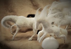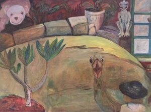 For example, Cone crafts soft pieces of felt into toys that resemble mythological figures such as Icarus; Van Heekeren’s dream-like paintings blur the line between reality and the imagination, and are often populated by literary characters or anthromorphised domestic objects or animals; and Hopcroft will be exhibiting Art Deco wallpaper inspired paintings that originally formed part of the stage set for Maitland Repertory Theatre’s production of Out of Order.