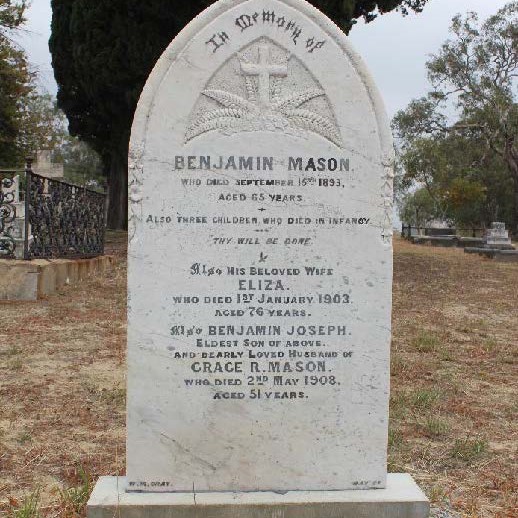 Benjamin Mason was the driving force in establishing the young Colony’s Jarrah timber export trade. He developed his simple mill in the hills at Carmel from the era of the crosscut saw and bullock team into a thriving and valuable enterprise based on the modern steam-powered circular saw.