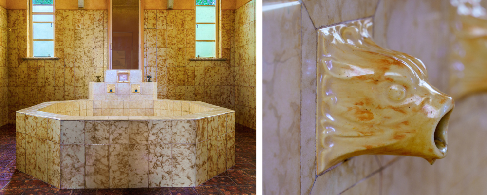 Of all the rooms in Everglades, the dining room has to be the quirkiest. Featuring a large relief artwork and water fountain by famous Danish artist of the time, Otto Steen, it’s a light-hearted nod to food gathering and a delight for visitors who want a peek into the lavish dining rituals of the Art Deco period. Over the years, the fountain has stopped working and the mural requires cleaning and careful conservation.