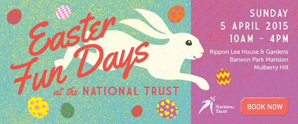 The National Trust of Australia (Victoria) will host its annual Easter Fun Day at three of Melbourne’s oldest manors, including the beautiful Rippon Lea House and Gardens, Barwon Park and Mulberry Hill, on Sunday 5 April 2015.
