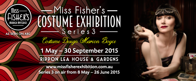 To coincide with the airing of Miss Fisher’s Murder Mysteries Series 3 on ABC on Friday 8 May 2015, the Honourable Miss Phryne Fisher, television’s most elegant lady detective, returns to Rippon Lea Estate at part of the National Trust’s Miss Fisher’s Murder Mysteries Costume Exhibition running from 1 May to 30 September 2015.