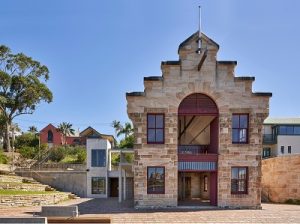The 1880s Fenwick Building is a two-storey sandstone boat store now adapted for use as a cafe and gallery space. It incorporates new internal stairs and outdoor areas, a commercial kitchen, as well as public amenities and a lift to serve the building, the surrounding park and the adjacent transport interchange.