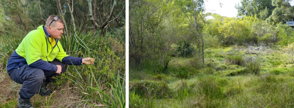 Justin says the area has been so well cared for over the last ten years, it’s now almost self-sustaining – which is always the end goal. Now the area is populated with a variety of flowering native species, including Sandfly Bush (zieria smithii), Juniper Wattle (acacia ulicifolia) and Native Cranberry (astroloma humifusum).