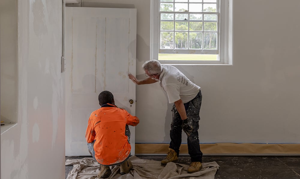 With works documented by the National Trust conservation team, heritage trades experts then got to work to level timber floors, repair cracked walls, remove modern infill walls, replace broken sash cords to the windows, and remove paint from historic sandstone windowsills.