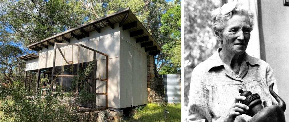 Her home, Ahimsa, is a small bushland property that still stands today, consisting of a simple sandstone cottage, a grotto, and a meditation hut that Byles called the ‘Hut of Happy Omen.’