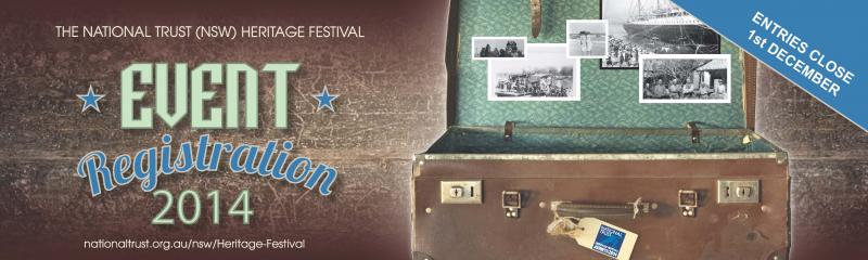 The 2014 National Trust Heritage Festival registrations are open. Be part of the longest running community based festival. The festival has been going for 34 years promoting heritage related events from all over NSW. The registration is FREE and closes on 1 December 2013 for the printed events guide. We want your events whether they are exhibitions, tours, plays, lectures, music or dress ups. If it interests you it will interest us. This years theme is Journeys, the interpretation is up to you. It maybe walkabout, migration, immigration, adventures, discoveries or cultural studies. The theme is there as a guide. Please contact Eloise ehairman@nationaltrust.com.au if you have any questions.