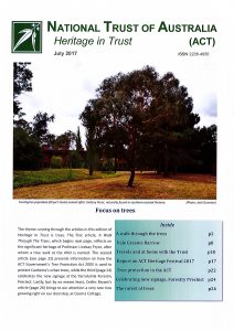 Heritage in Trust July 2017Publication ACTThis edition focuses on the protection, history, rare and importance of trees.