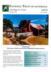 Heritage in Trust November 2017Publication ACTThis issue features Blundells and Cooma Cottage and announces the National Trust ACT Heritage Award winners, as well as the usual information about events past and coming up…